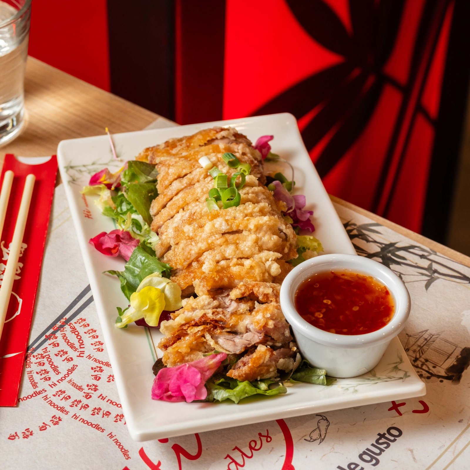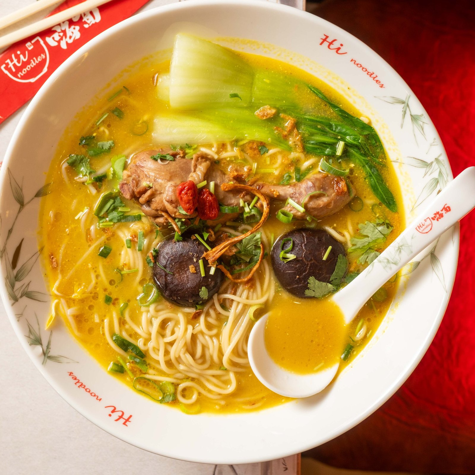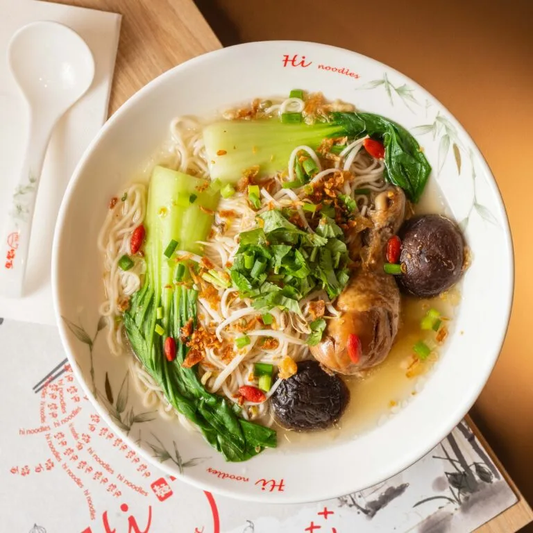 Sopa de noodles con jamoncito de pollo al curry