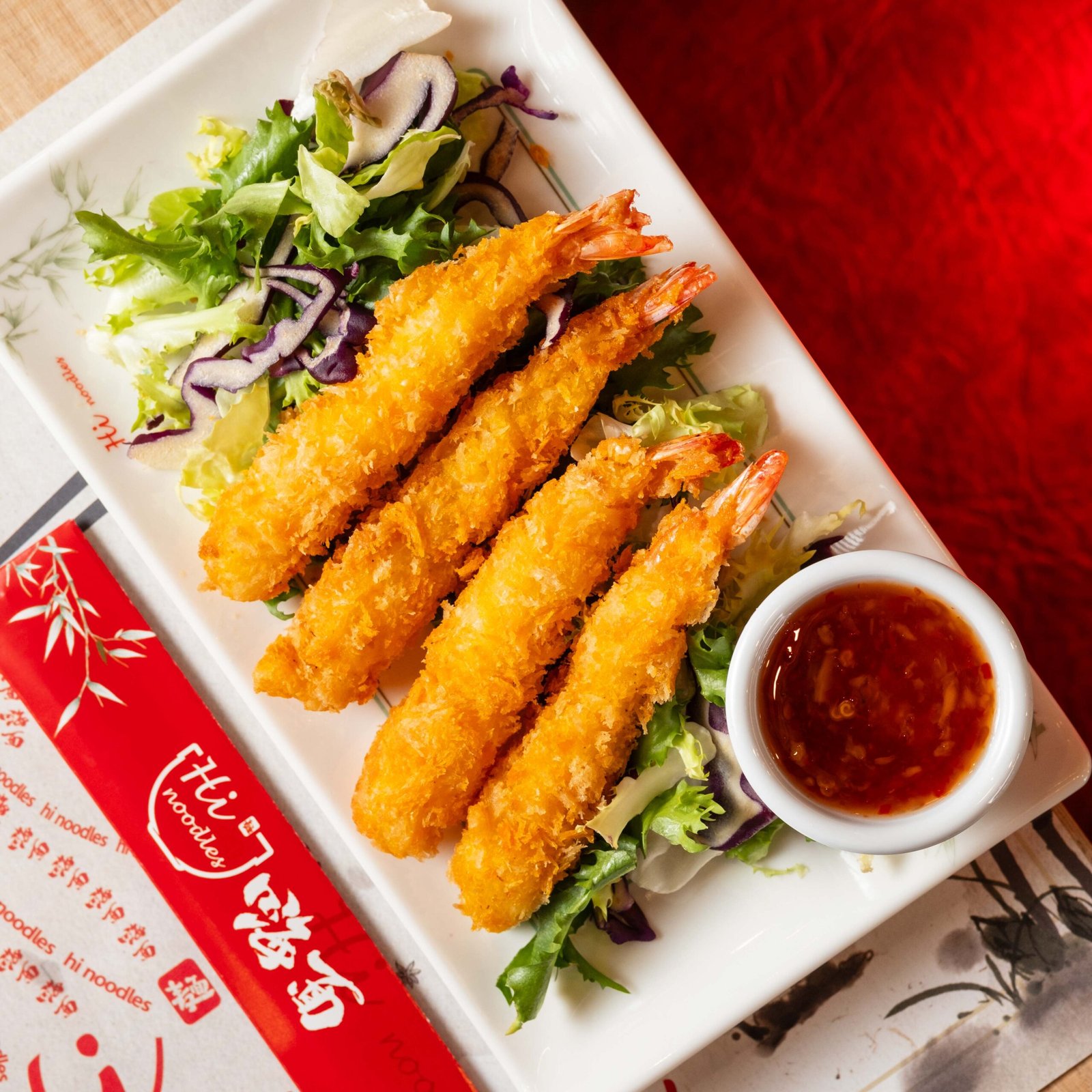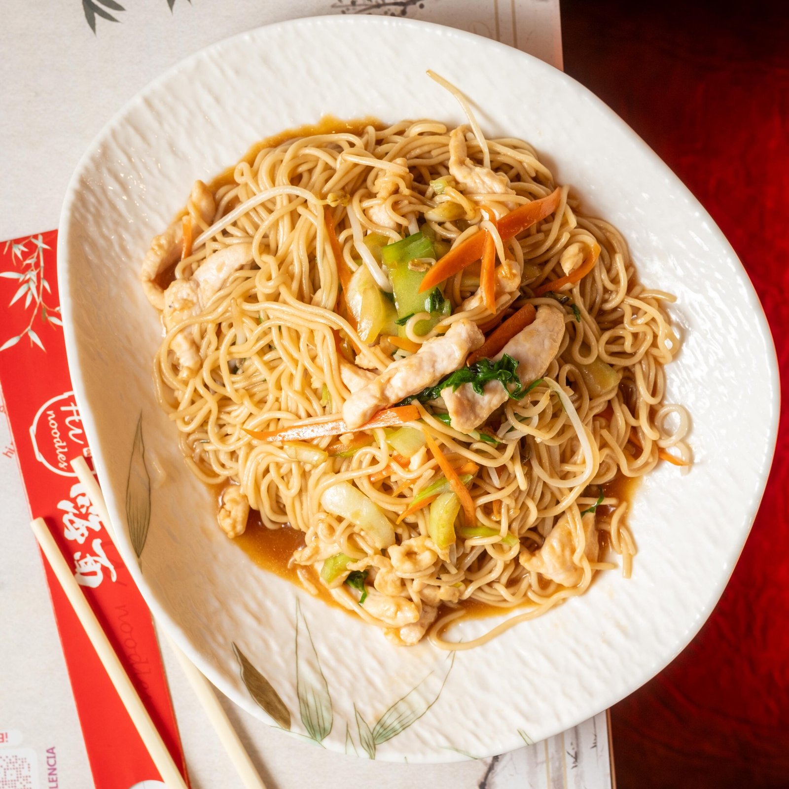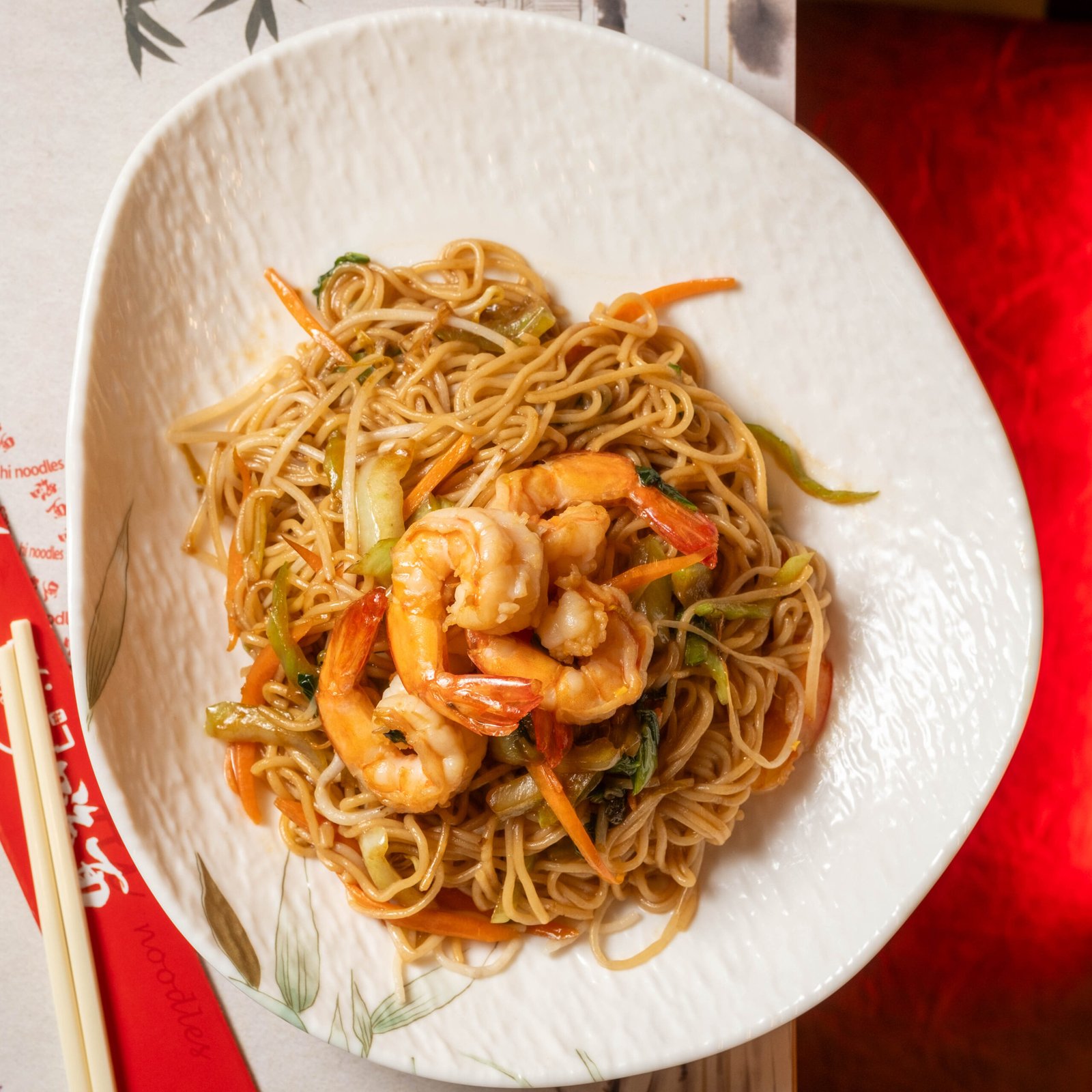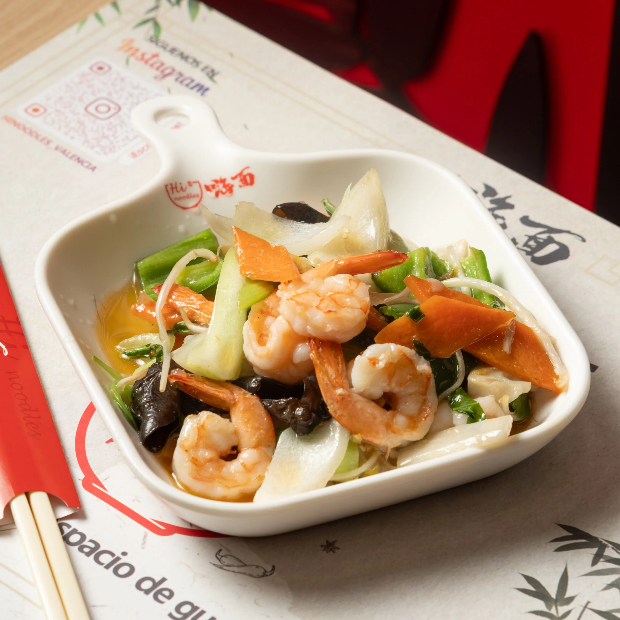 Noodles salteados con gambas (+1€)