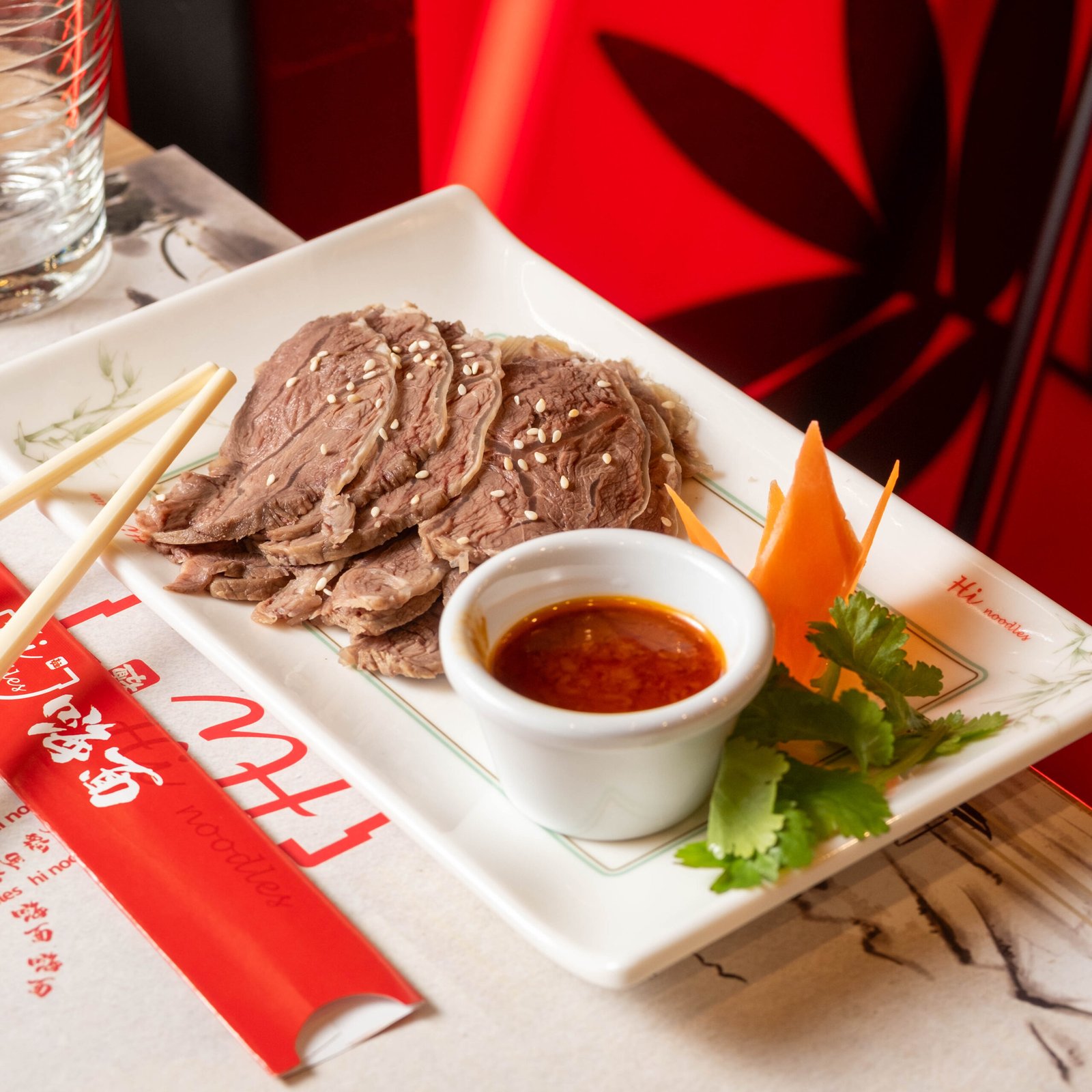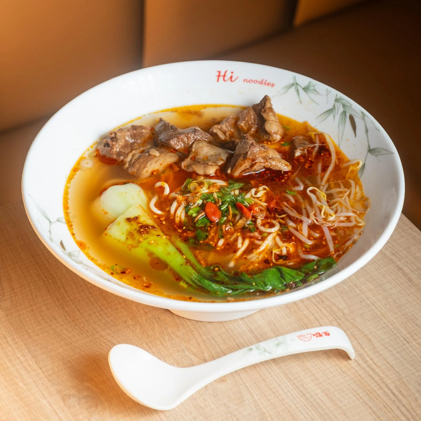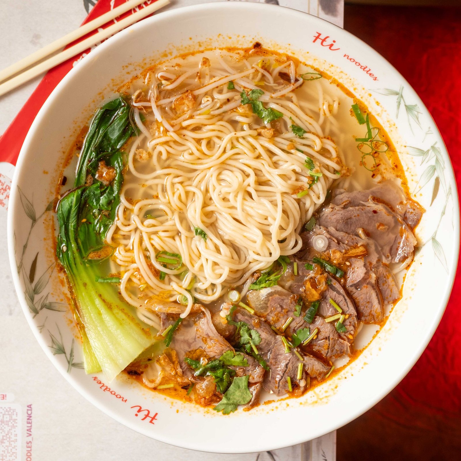 Sopa picante de noodles con ternera