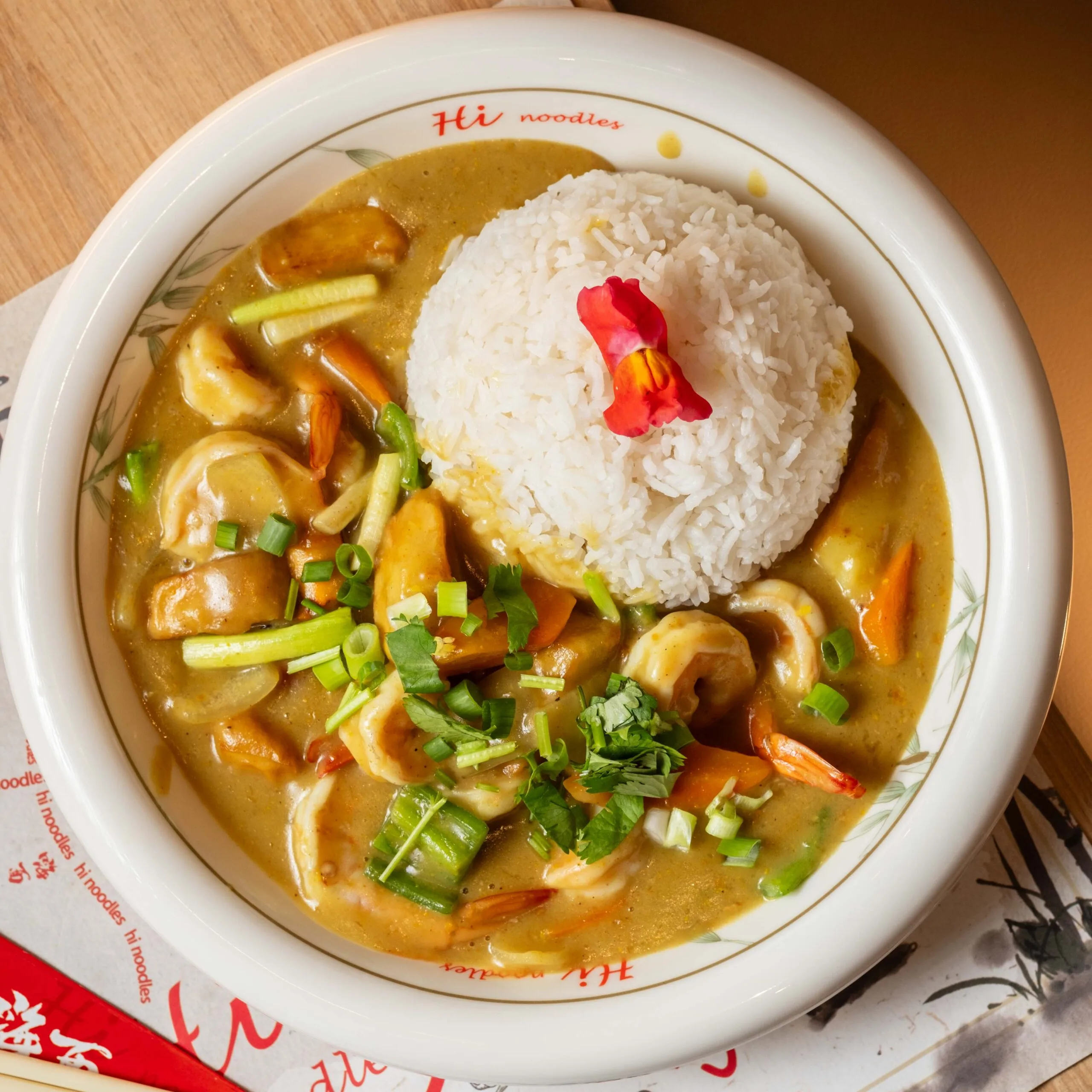 Arroz blanco con gambas al curry
