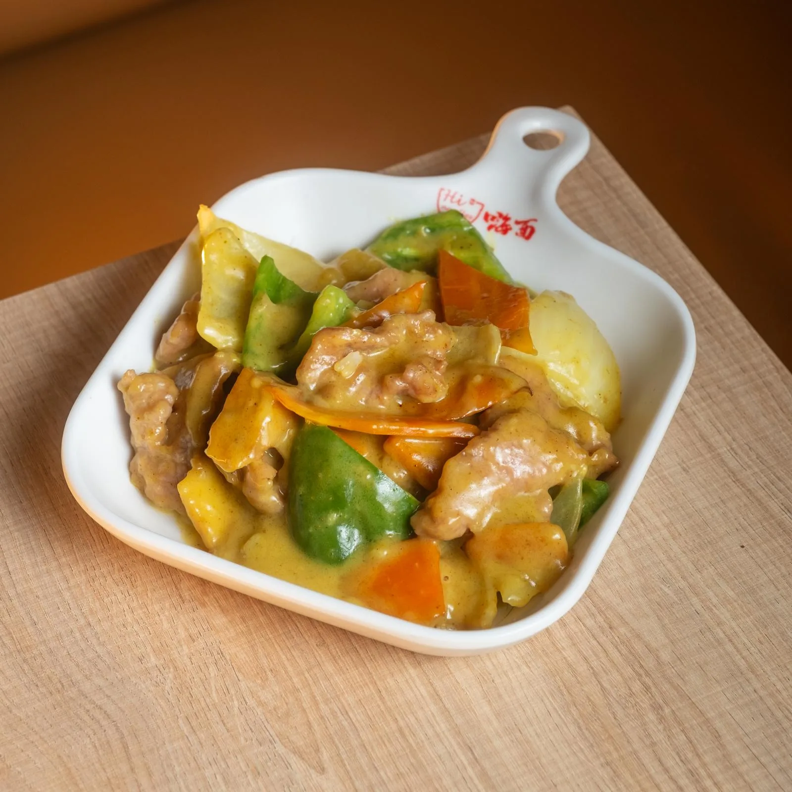 Ternera salteada con patatas y salsa curry